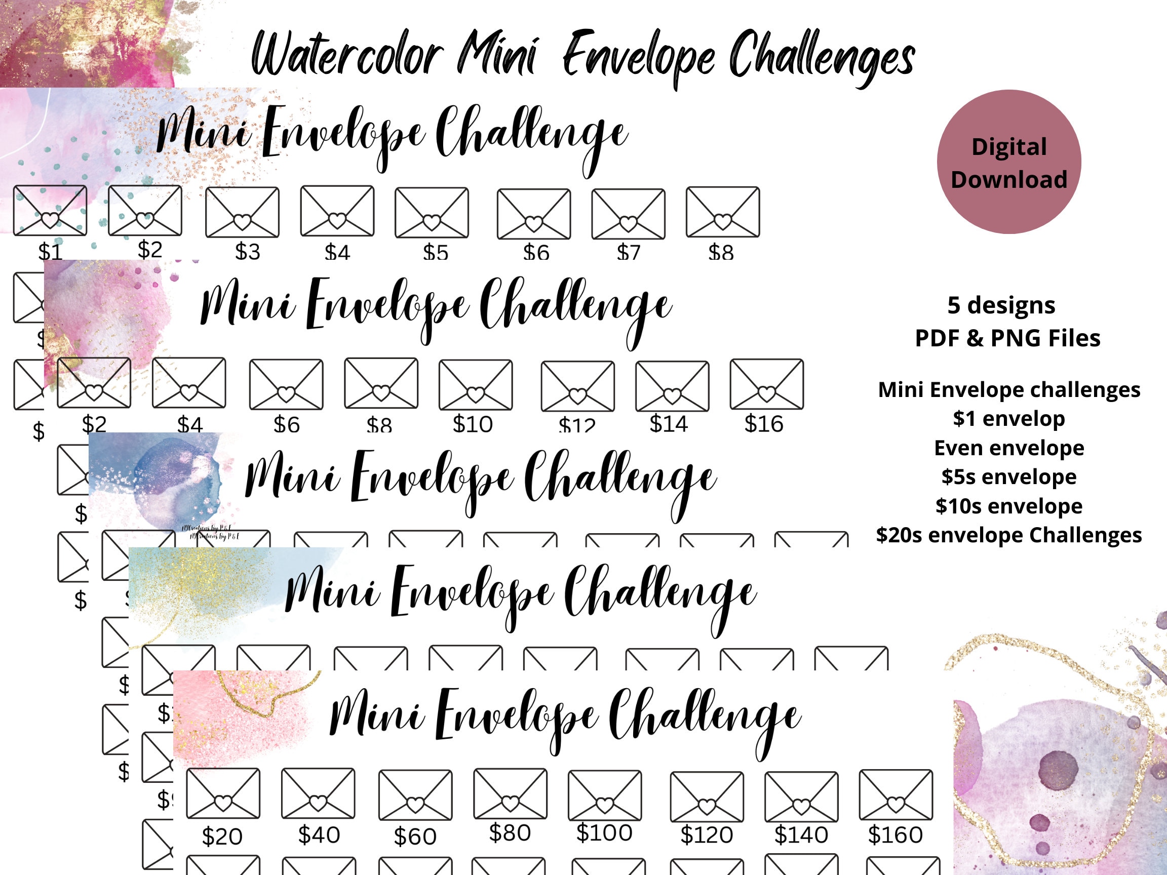 Get ready to save with these easy adorable mini version of the 100 envelope savings challenges! These Savings challenges are a perfect fit for your A6 or a5 cash envelopes. Perfect for your budget binder and cash envelopes. Set yourself a goal to save your custom amount! Perfect for lower income budgets. These savings challenge trackers do not have the final amount you will save just to keep it more fun! This is a digital download purchase, simply buy, download, save and print as many times as you like. These challenges are very simple and fun! YOU CAN DO THIS!!